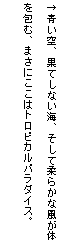 旅の最期を飾るのは、南国の楽園沖縄。ゴールである首里城の守礼門をくぐると、KHでいっぱいになったリュックサックの重さにへたりこんでしまった。波の音をBGMに、ハイビスカスの添えられたトロピカルジュースでのどを潤す。今日までの長い旅路を想い静かに目を閉じた。